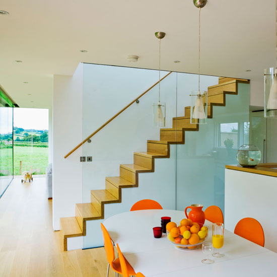 Every architect dreams of designing their own home. The owners' first job was to choose a reinforced glass panel on the staircase to act as a balustrade while maximising light. Decking offers continuation from inside to out, and wooden shutters create shade in the summer months.